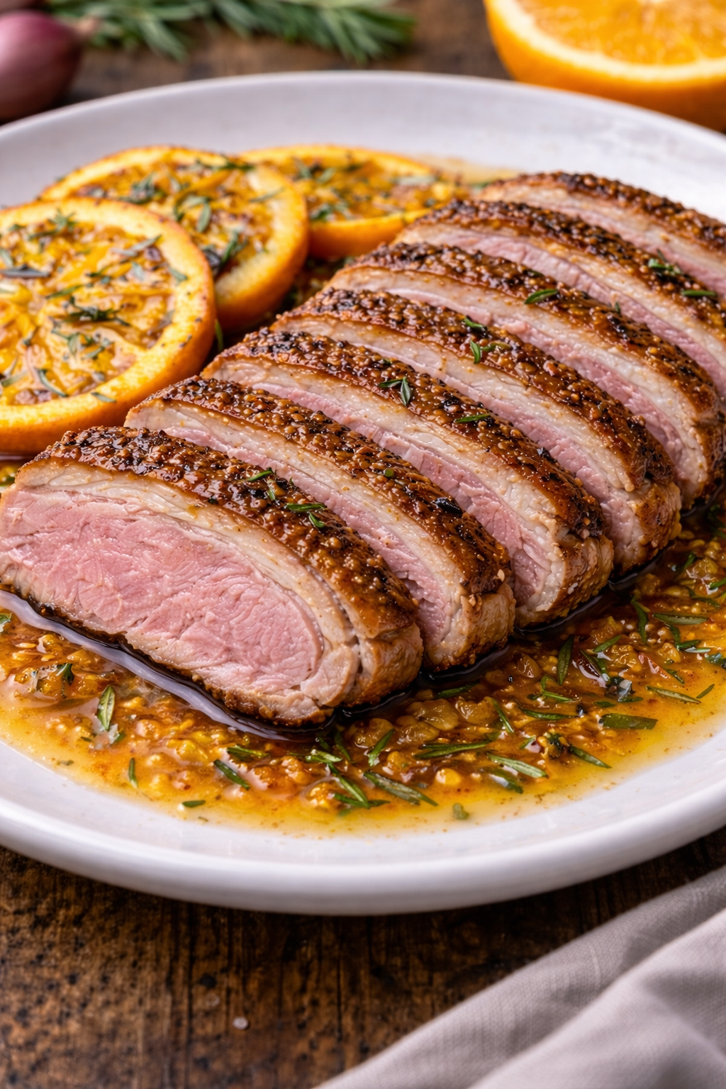 PEITO DE PATO MARINADO EM SUMO DE LARANJAS FRESCAS CONFEREM A ESTE PRATO UM SABOR INCRÍVEL
